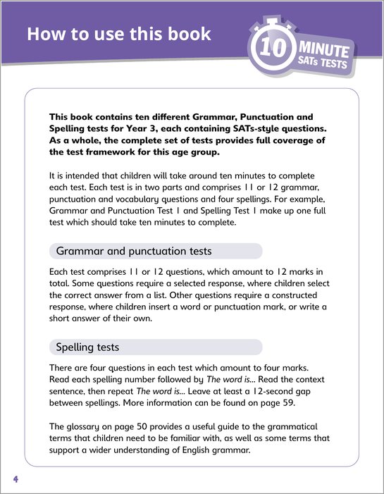 - 10 complete grammar and punctuation tests and 10 spelling tests
