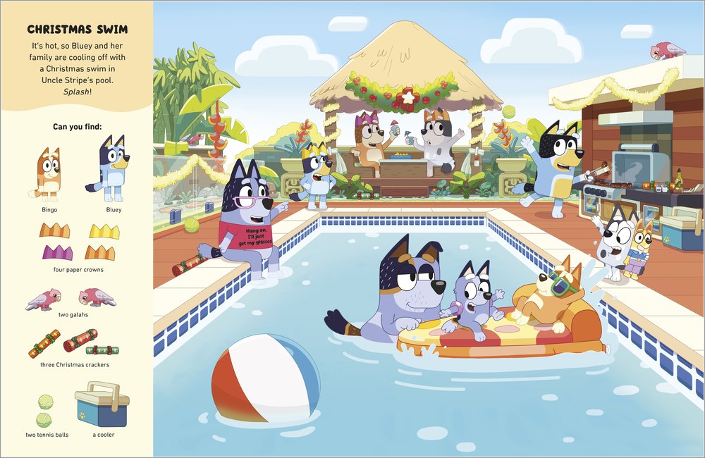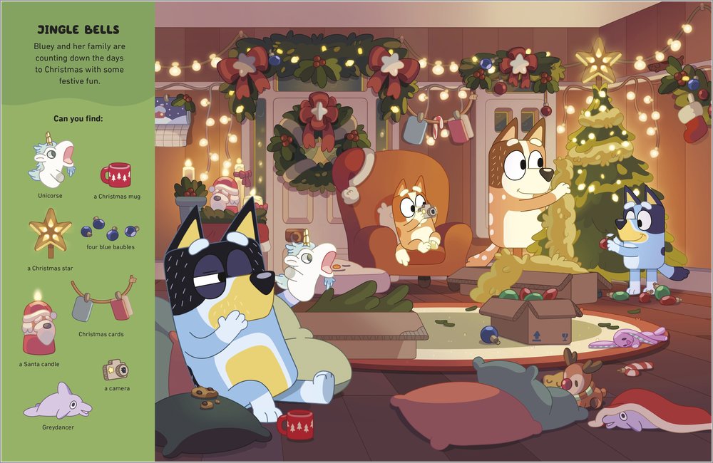 Everyone is getting ready for Christmas, but can you find Bluey and Bingo in all the festive fun?
