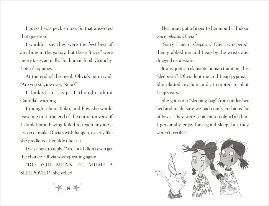 Nora agrees to help Olivia get a pet – through determination, a cunning plan and PLENTY of mischief. But can she do it before she runs out of stardust and is trapped on Earth forever…?