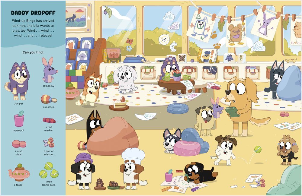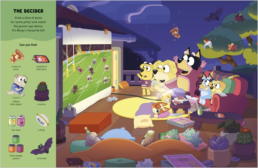 Keep your eyes peeled for the kiddos! Spot Bluey in the collapsed cubby and join the search for Bingo and Coco at the chemist! Reckon you can help the grannies find the hidden bargains at the garage sale?