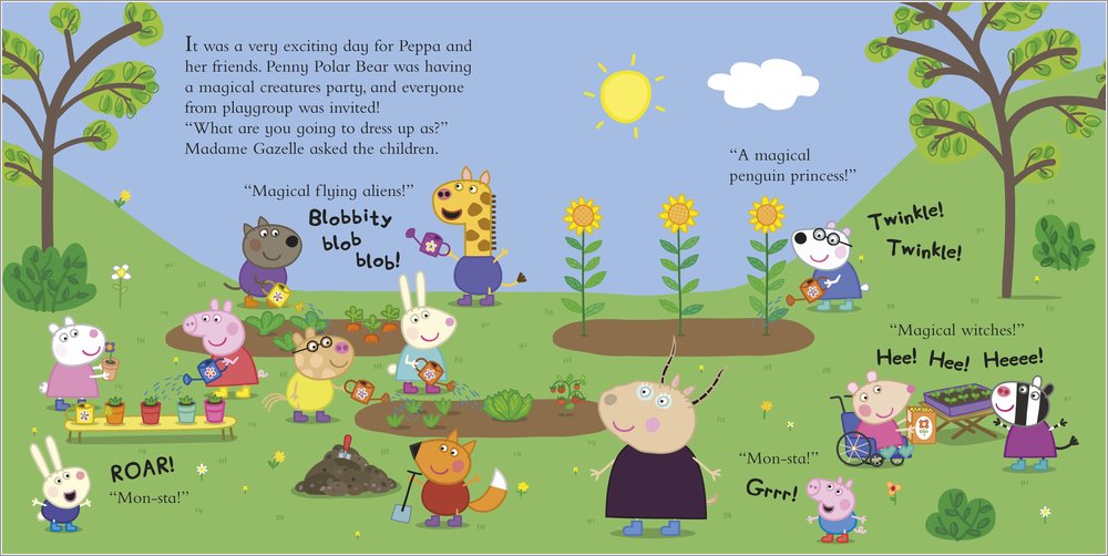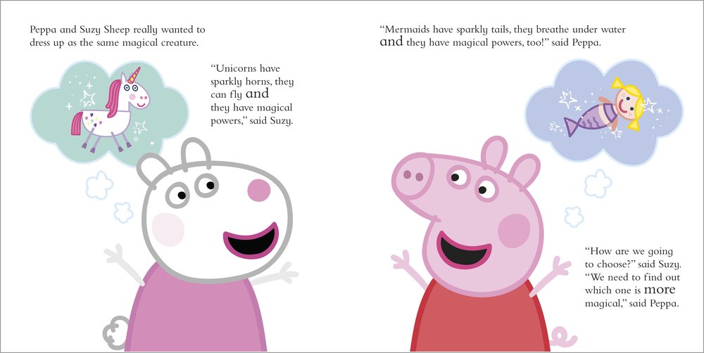 Peppa and Suzy want to dress up as the same magical creature for Penny’s costume party. Suzy suggests they go as unicorns and Peppa thinks they should go as mermaids. What will they decide to go as? Includes FREE headband.