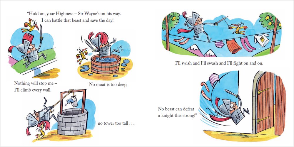 Sir Wayne and his dragon are BACK and this time they’re out to rescue a princess held captive by a Big Bad Beast. But WHO exactly will save her? Sir Wayne: who can climb every wall – no moat is too deep, no tower too tall. Or Dragon: so muscly and lean – he can fly and fart flames, he’s a fighting machine! If ONLY there was a way to get the best of both…