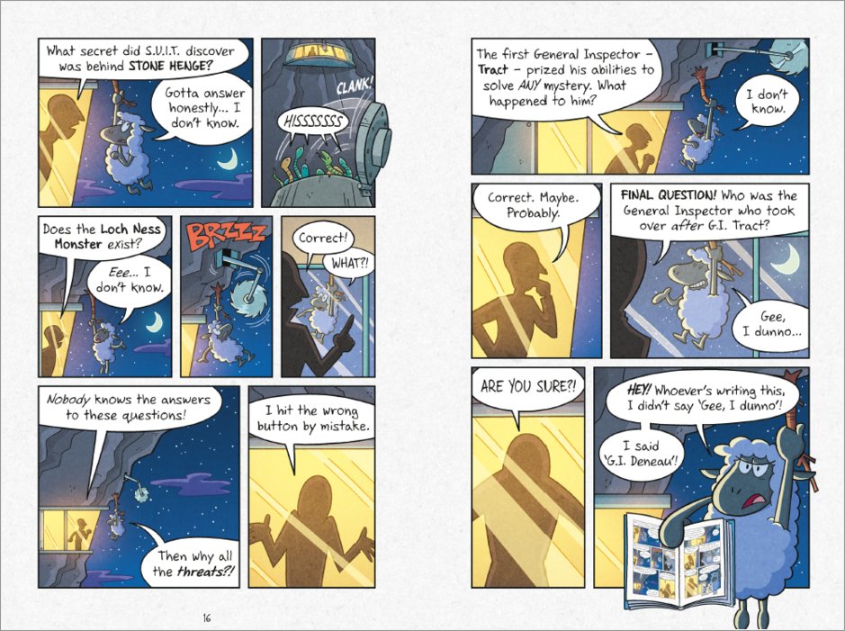 New S.U.I.T.* recruit Zeb the sheep joins the flock to help crack the greatest mystery of all! But, just what is the greatest mystery of all? Pondering that conundrum is what has kept the dearly departed General Inspectre tethered to Earth long after he should have moved on to the great super-spy base in the sky. Zeb must solve the series’ biggest mystery EVER to finish the Inspectre’s unfinished business!