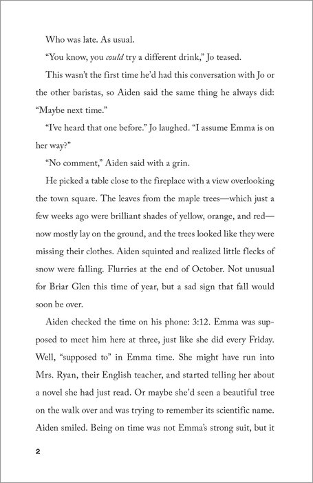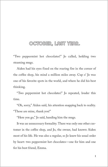 But there’s a chill in the air, and not just because it’s winter. Emma’s best friend, Aiden, isn’t all too happy to see her after she left without so much as a goodbye. He and Emma have known each other since elementary school, and they used to do everything together. They even share a favourite drink: a peppermint hot chocolate from their favourite coffee shop, Cup o’ Jo. This was where Emma first told Aiden she was thinking of leaving Briar Glen. It was also where Aiden had planned to confess his growing feelings for Emma – before she showed him her acceptance letter and everything changed.