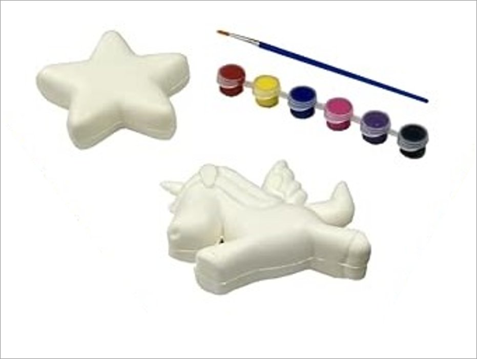 Paint Your Own Squishy: Unicorn World includes everything you need to paint two unicorn and star squishy toys