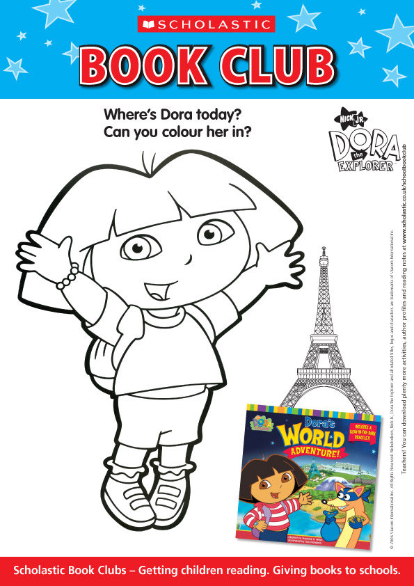 Here’s a picture of Dora for you to colour in.