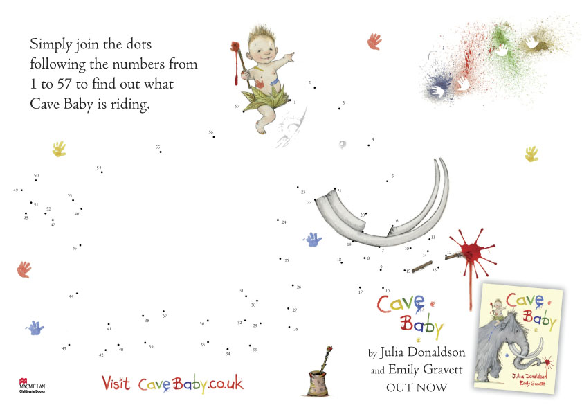 Join the dots to find out what Cave Baby is riding.