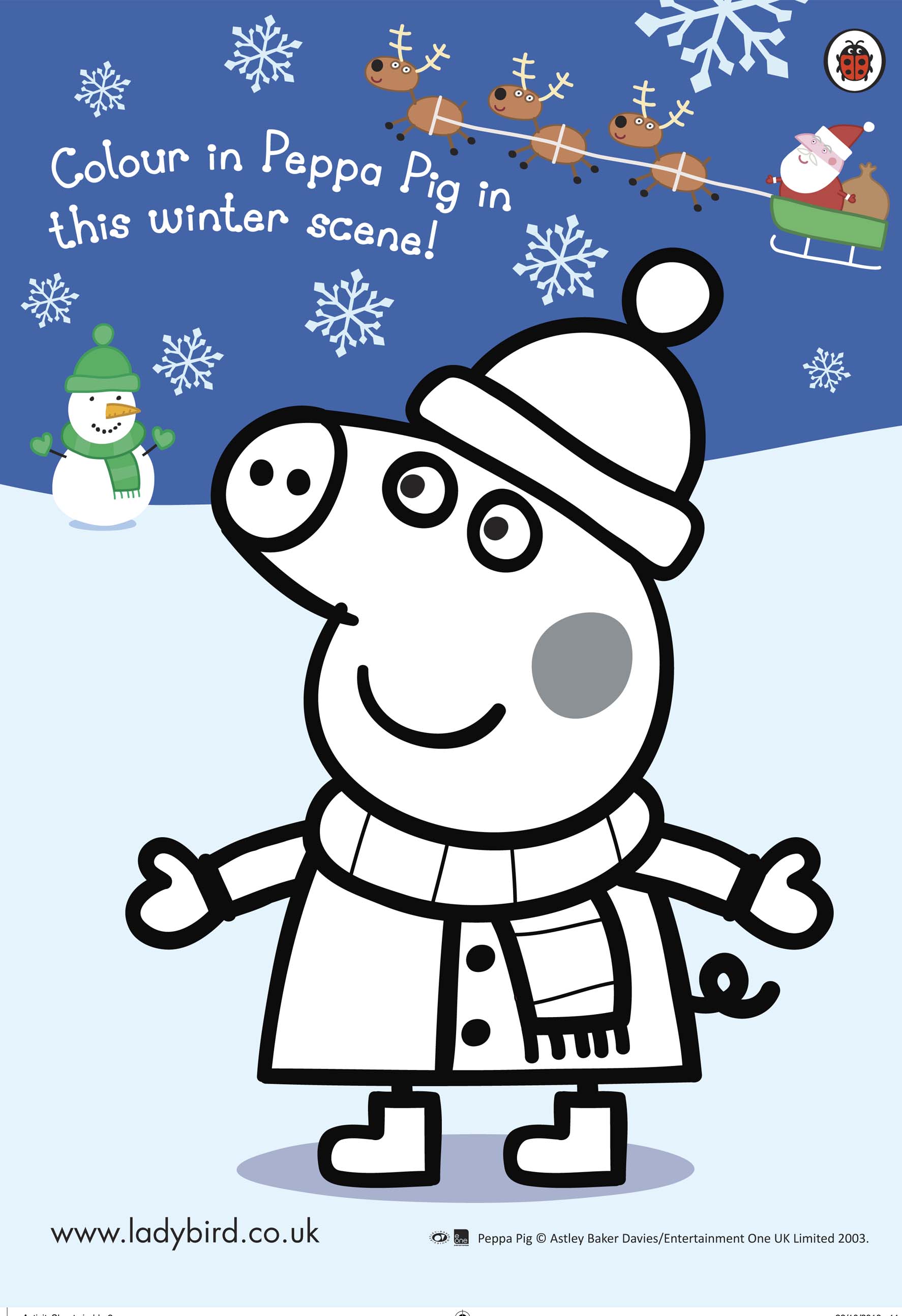 Colour Peppa Pig in a snowy winter scene!