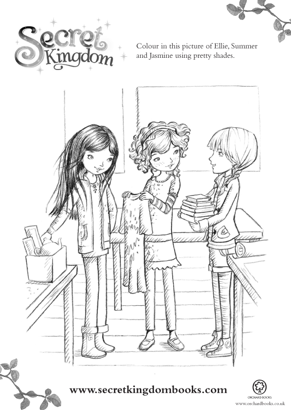 Colour this picture of Ellie, Summer and Jasmine using pretty shades.