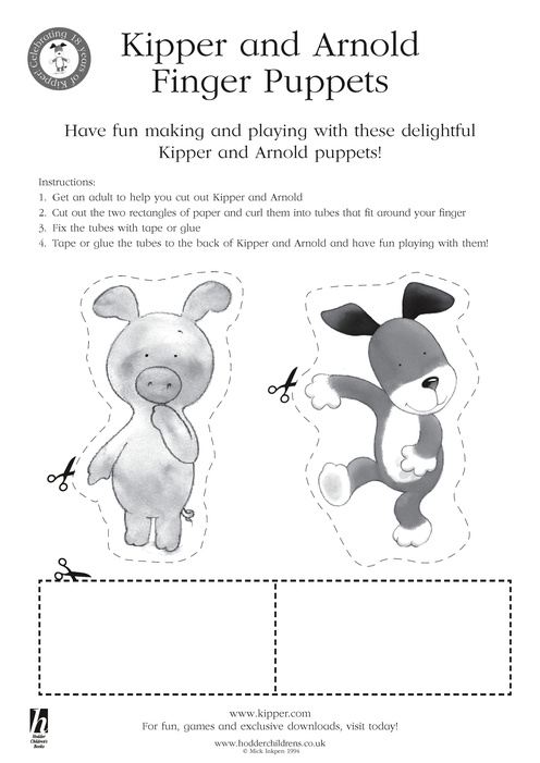 Have fun colouring in and then playing with these Kipper and Arnold finger puppets.