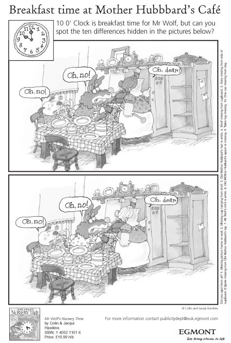 10 o’clock is breakfast time for Mr Wolf! Can you spot the ten differences?