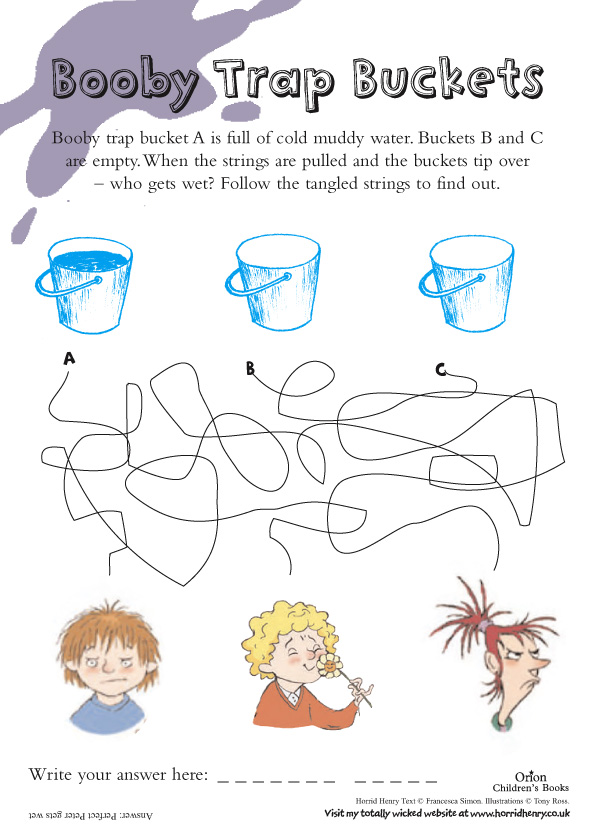 Follow the tangled string to find out who gets wet when the buckets tip over!