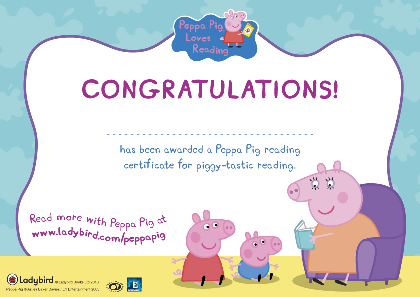 Download your very own Peppa Pig certificate for piggy-tastic reading!